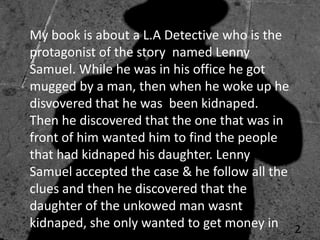 Lenny Samuel, a Los Angeles detective, is the protagonist of the story. While in his office, he is mugged by a man and kidnapped. He discovers his kidnapper wants him to find the people who kidnapped his daughter. Lenny accepts the case and follows the clues, eventually discovering that the daughter was not actually kidnapped but rather wanted money to build a school, and that her father had committed crimes, for which he is arrested.
