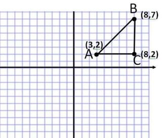 The document discusses the distance formula. It explains how to calculate the distance between two points (x1, y1) and (x2, y2) using the formula: Distance = √(x2 - x1)2 + (y2 - y1)2. It provides an example of calculating the distance between points (3,2) and (8,7), which equals 5. The document also contains instructions for students to practice using the distance formula to find distances between various point coordinates, and assignments to graph points and calculate distances using the formula.