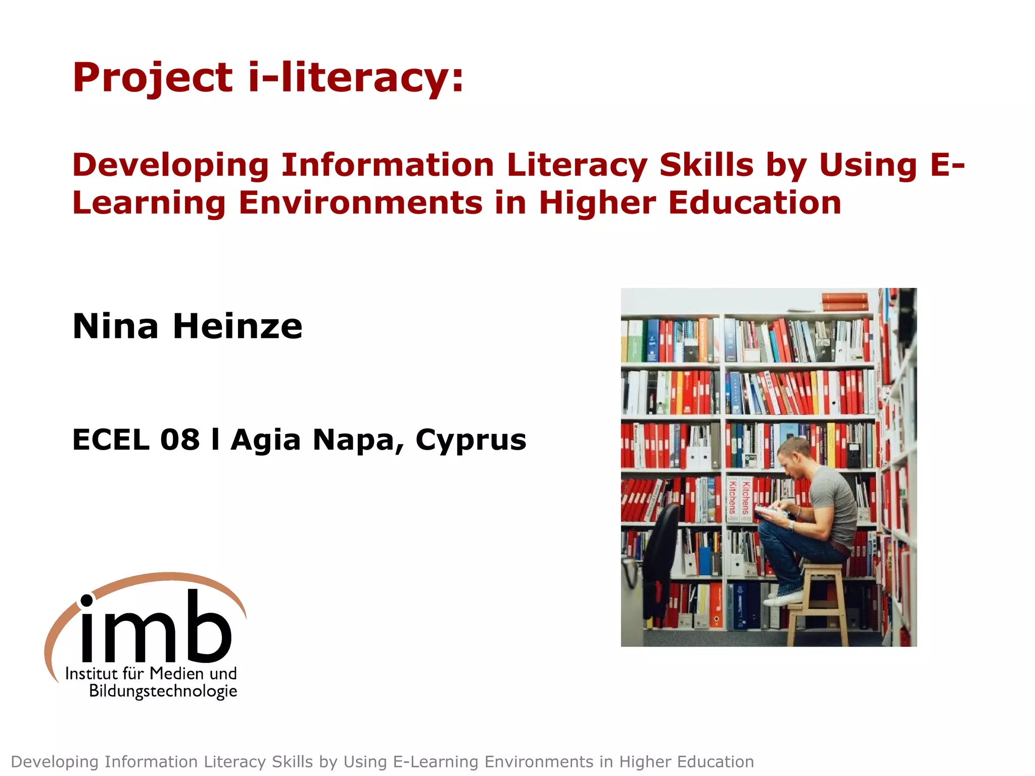 The document discusses a project called Project i-literacy which aims to develop information literacy skills in students using e-learning environments. It found that students are highly dependent on the internet and lack skills to properly evaluate online information. The project involves developing online tutorials and courses to gradually build students' competencies in finding, evaluating, and using information through self-directed learning and consultation with experts. It emphasizes designing e-learning that accommodates different learning styles and skill levels to allow students to effectively solve practical problems using their knowledge.