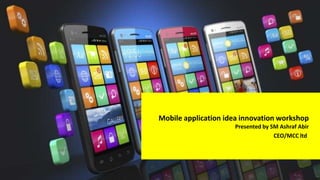 The document outlines a national mobile app development program organized by the Ministry of ICT, focusing on capacity building and innovation through workshops aimed at improving employability and socio-economic conditions. It discusses the growth of mobile applications from 2011 to 2016 and identifies key objectives such as enhancing technical education and vocational training. The program promotes idea generation for mobile apps, providing opportunities for rewards and support for promising concepts.