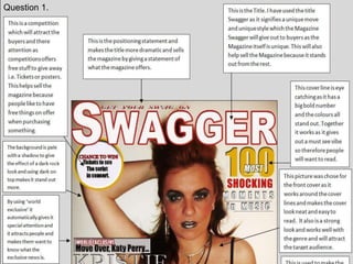 This document contains evaluations of 4 individuals and their profiles including name, gender, age, job, hobbies, music preferences, and places they shop. It also includes evaluations of a magazine mock-up addressing questions about the color scheme, model, headlines, content, and number of pages and pictures. The final sections discuss software used to create the magazine, selling the magazine in local stores and large retailers, and improvements made from a preliminary task to the final magazine product.