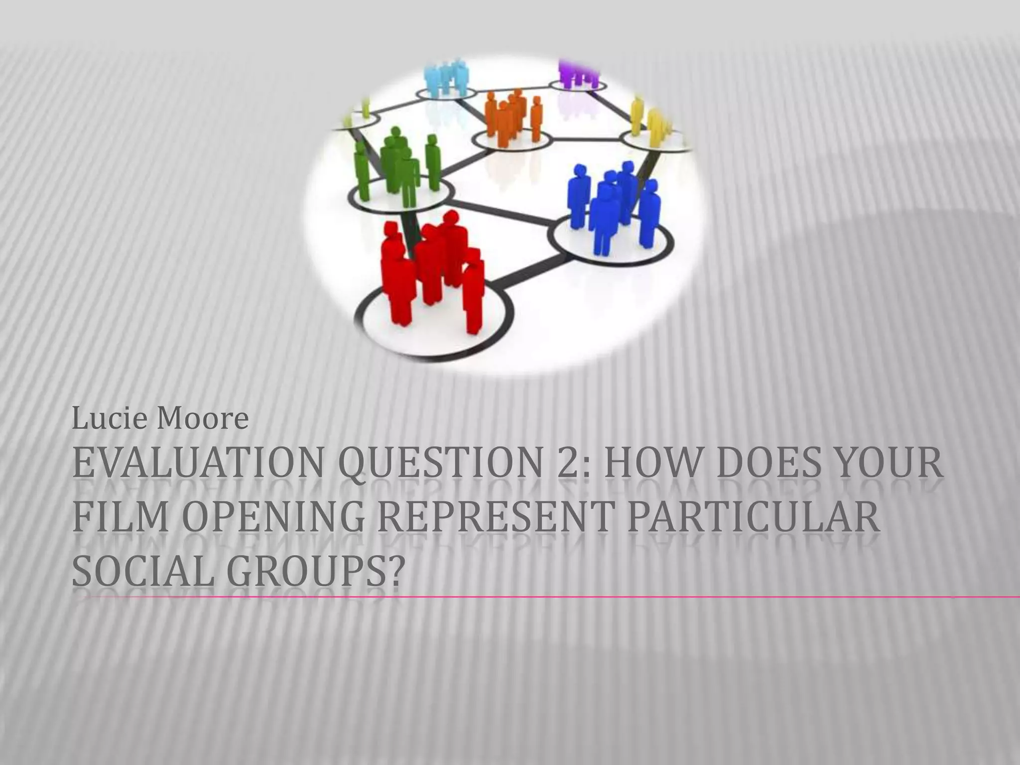 The document discusses how different social groups are represented in the film opening. It represents Goths/emos, high school jocks, and the popular "it girl." For each group, it explains the stereotypes used to clearly portray them. The Goth character, Ella, displays strong stereotypical conventions like being moody and mysterious. The jock is portrayed as handsome, popular with girls, but dumb and naive. Laura, the "it girl," is shown as attractive, girly, popular, and confident, matching stereotypes from movies. In conclusion, the document argues that each social group is represented through recognizable stereotypes.