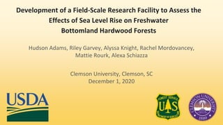 The document proposes developing a field-scale research facility to study the effects of sea level rise on freshwater bottomland hardwood forests. It outlines: