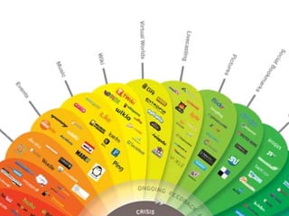 The document discusses the increasing use of the internet and social media. It provides statistics showing that internet use among adults in the US has risen from 47% in 2000 to 78% in 2011, with the largest increases among older age groups. It examines definitions of social media and reviews common activities like managing social networks, sharing photos, watching videos, and chatting online. Charts show statistics on these activities for US, Italian, and UK internet users. The document argues that blending social networks with training can improve relationships, achievement, and engagement, as supported by case studies and literature. It warns that online learning requires a change in methods to take advantage of social media and avoid "developmental displacement."