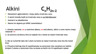 1. Umesto nastavka –an u nazivima alkana,-en kod alkena, alkini u svom nazivu imaju