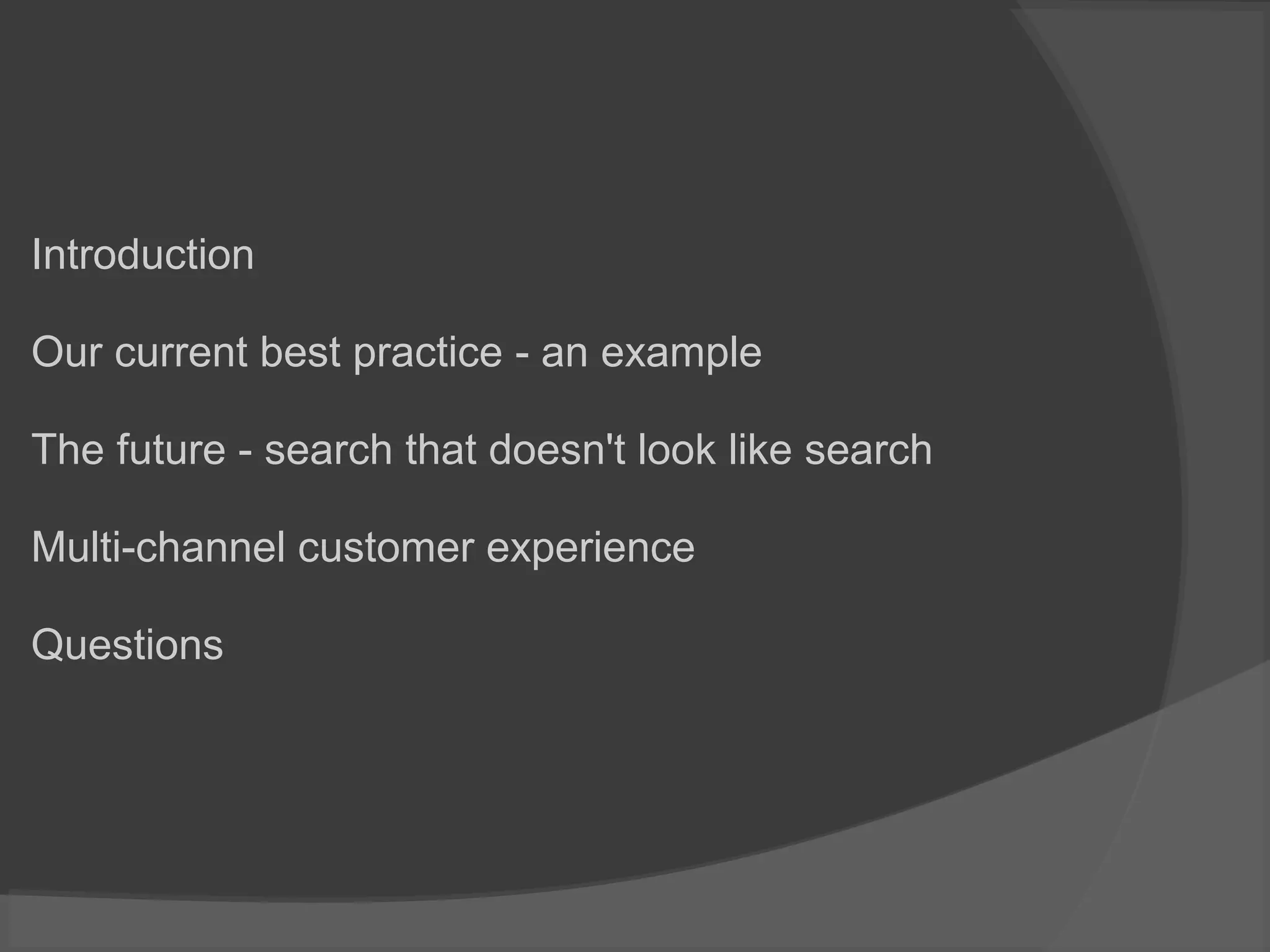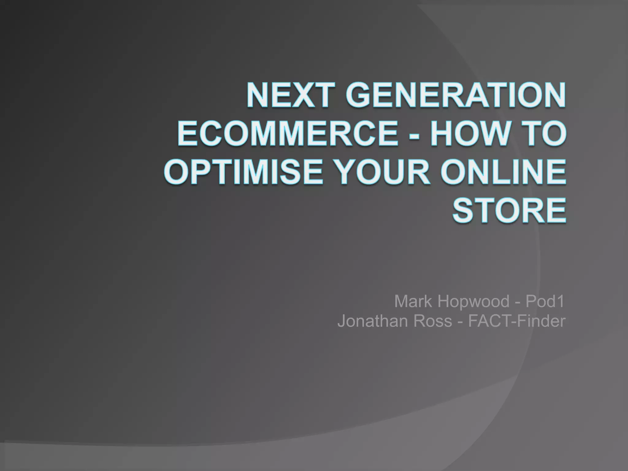 This document provides information about two companies, Pod1 and FACT-Finder. Pod1 was founded in 2001 and has over 100 staff focused on ecommerce, especially for fashion retailers. They have done over 30 Magento implementations. FACT-Finder was founded in 1992 and has seen 40-60% annual growth, operating in several European cities with over 90 staff. The document asks questions about offline data and the customer journey, including entry points, on-site search and mobile search capabilities.