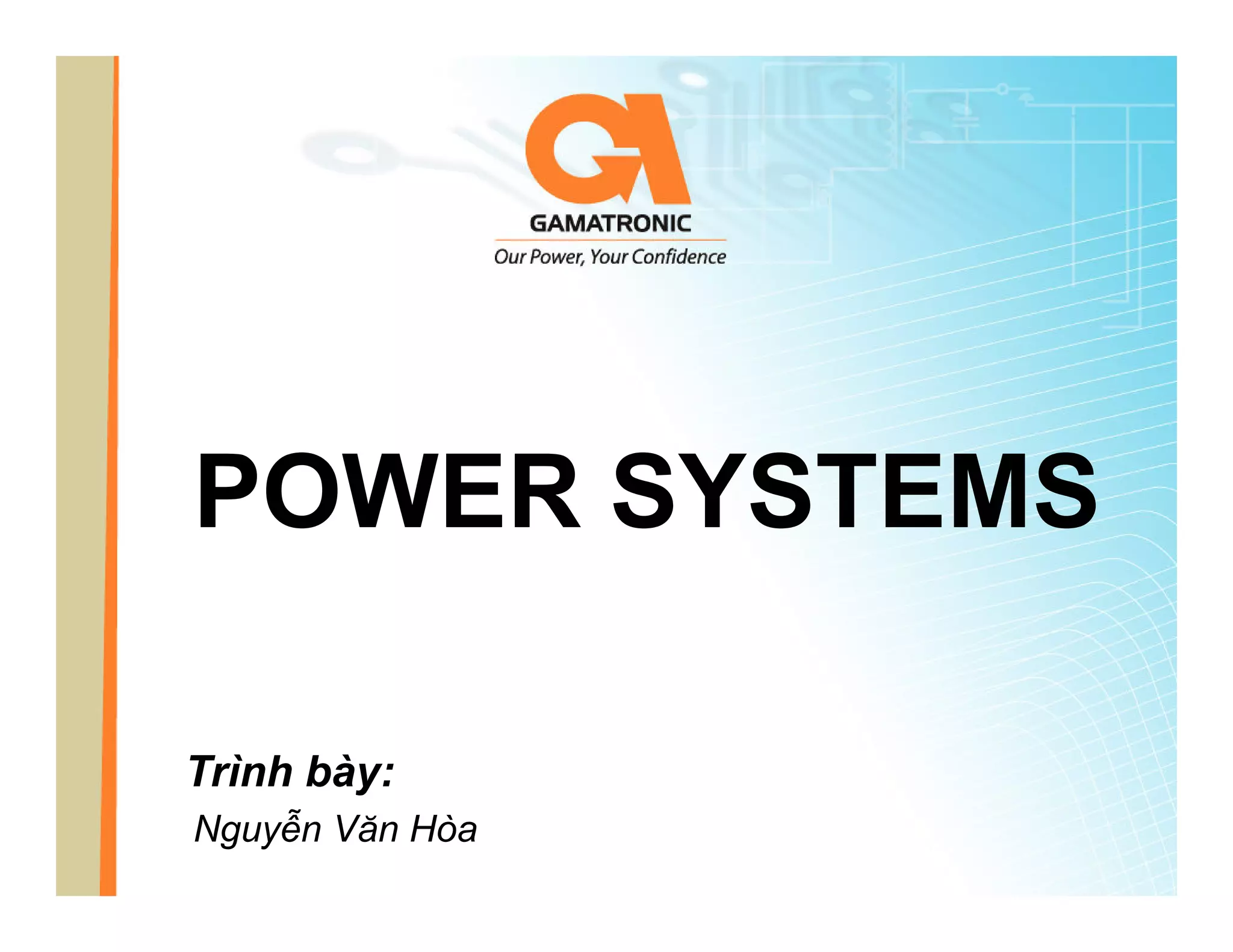 This document provides an overview of Gamatronic power systems, including UPS systems and DC power systems. It discusses Gamatronic's history and product range. For UPS systems, it describes the Power+ and Mega V2 modular UPS families in detail, including their features such as redundancy, scalability, efficiency, and battery configurations. It also discusses DC power systems for telecom applications, focusing on the benefits of the 1U DC modular rectifier solution such as high efficiency, scalability, reliability and environmental friendliness.