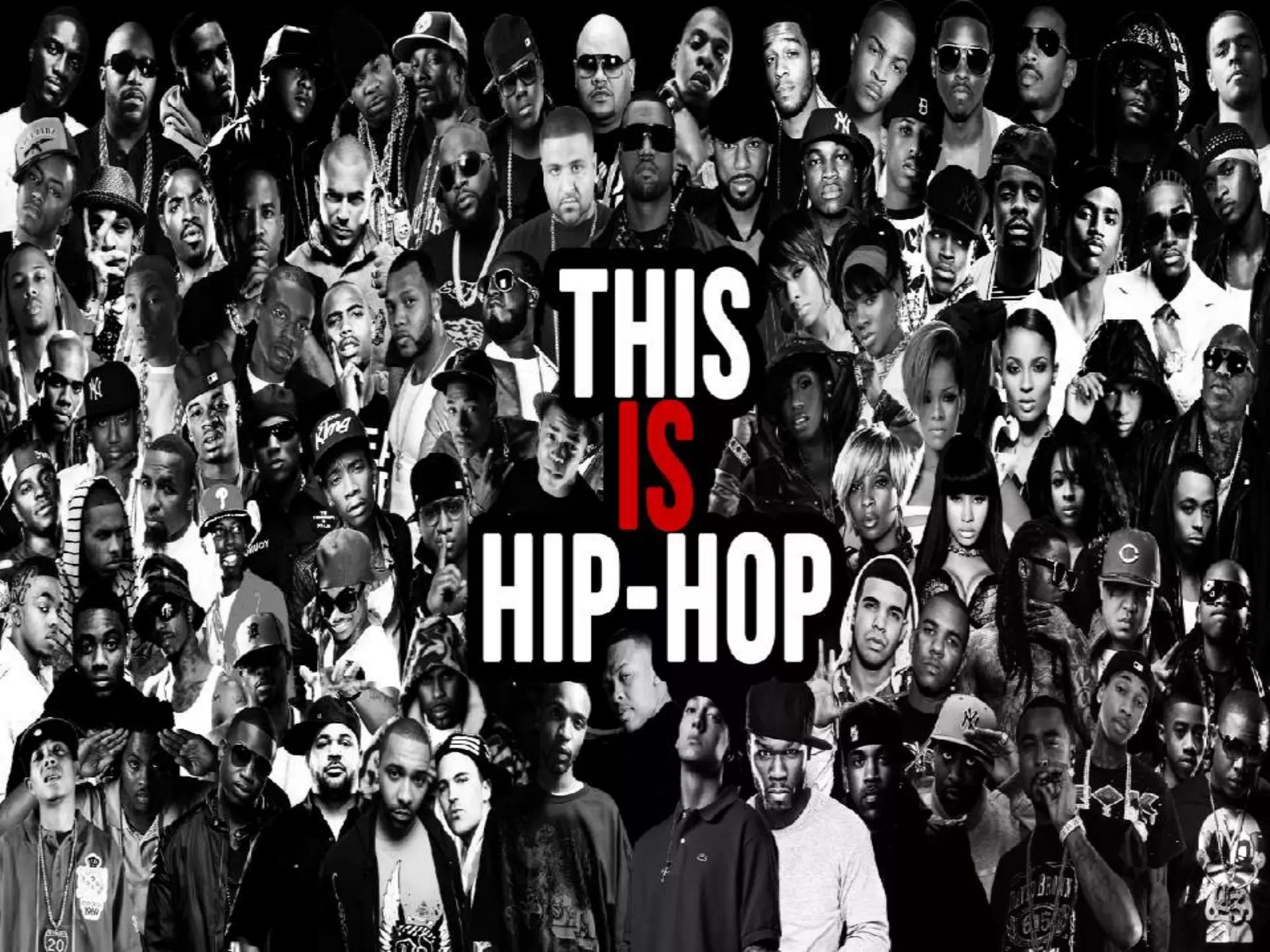 Hip hop music is a genre consisting of rhythmic music that accompanies rapping. It developed as part of hip hop culture, defined by elements like MCing, DJing, breakdancing, and graffiti. The group chose to do their project on hip hop because they are all familiar with and interested in hip hop music produced in America and the UK. Typical appearances for females in hip hop include short or revealing dresses and long hair with bright makeup, while males often wear high top sneakers, baseball caps in bright colors.