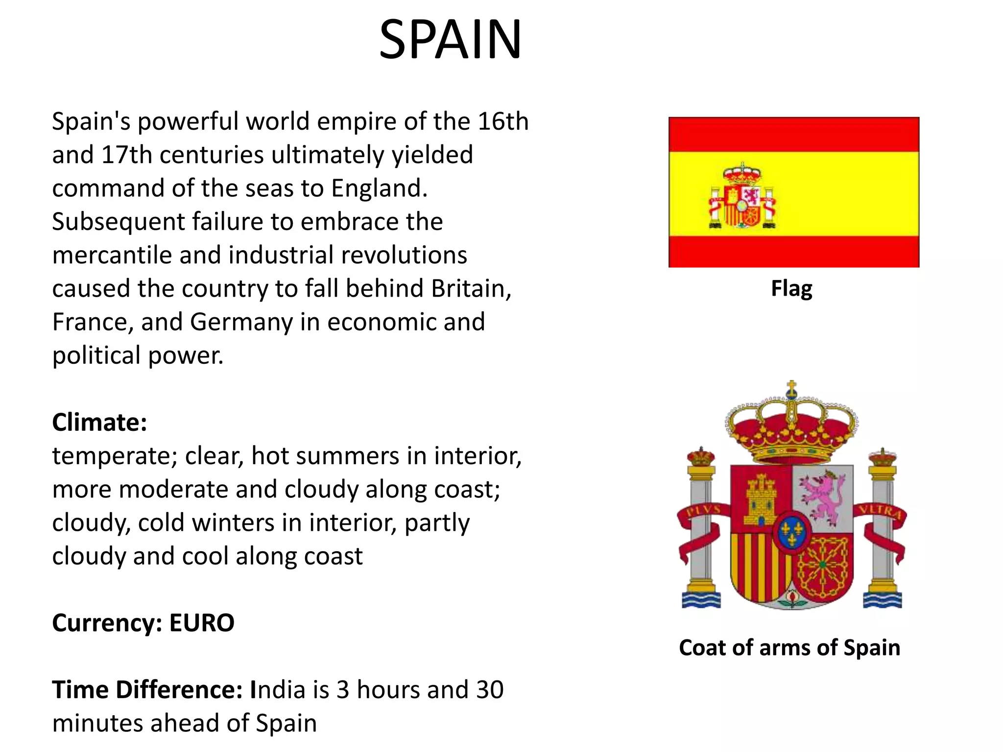 Spain's dominance in the 16th and 17th centuries waned as it failed to keep pace with economic developments, losing maritime power to England. The country has a temperate climate, uses the euro, and is known for unique cultural aspects, including its wordless national anthem and festivals like La Tomatina. Málaga is highlighted as a modern yet historic city that has invested in cultural heritage and tourism despite initial industrial appearances.