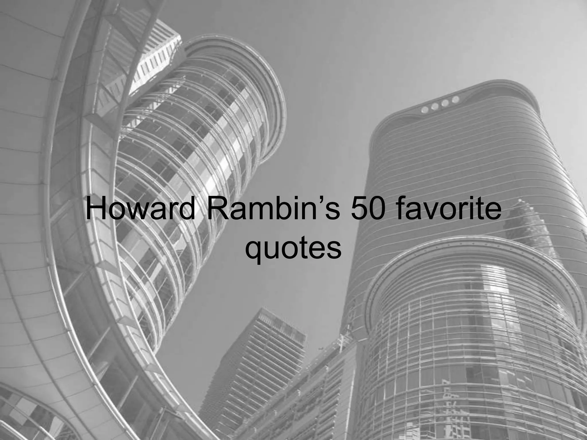 The document contains a collection of 50 quotes from Howard Rambin on various topics related to success, freedom, leadership, and business. Some of the key ideas expressed are: success requires constant self-improvement; freedom is lost gradually through apathy; order and planning are important for creativity; consistency and an upbeat outlook are important for success; and people only do business with those they know, like, and trust. The quotes provide advice and perspectives on achieving goals, overcoming adversity, and leading an effective and principled life.