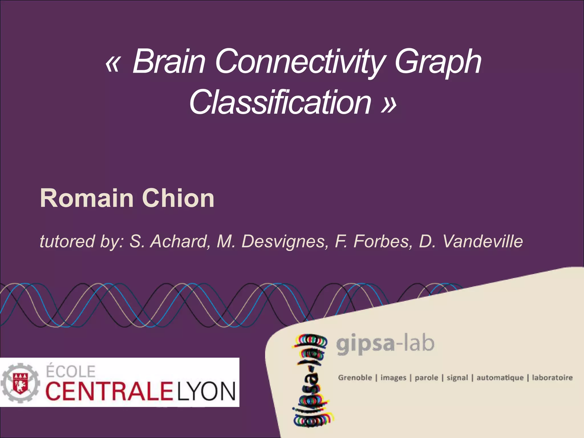 This document summarizes a study on classifying brain connectivity graphs (BCGs) using graph theory measures. It introduces graph theory concepts and previous work using global and local measures. The study finds that using histograms of local clustering coefficients and chi-squared distance achieves 83% accuracy classifying BCGs, outperforming global measures. It also examines the stability, scalability and effects of randomization on the classification approach.
