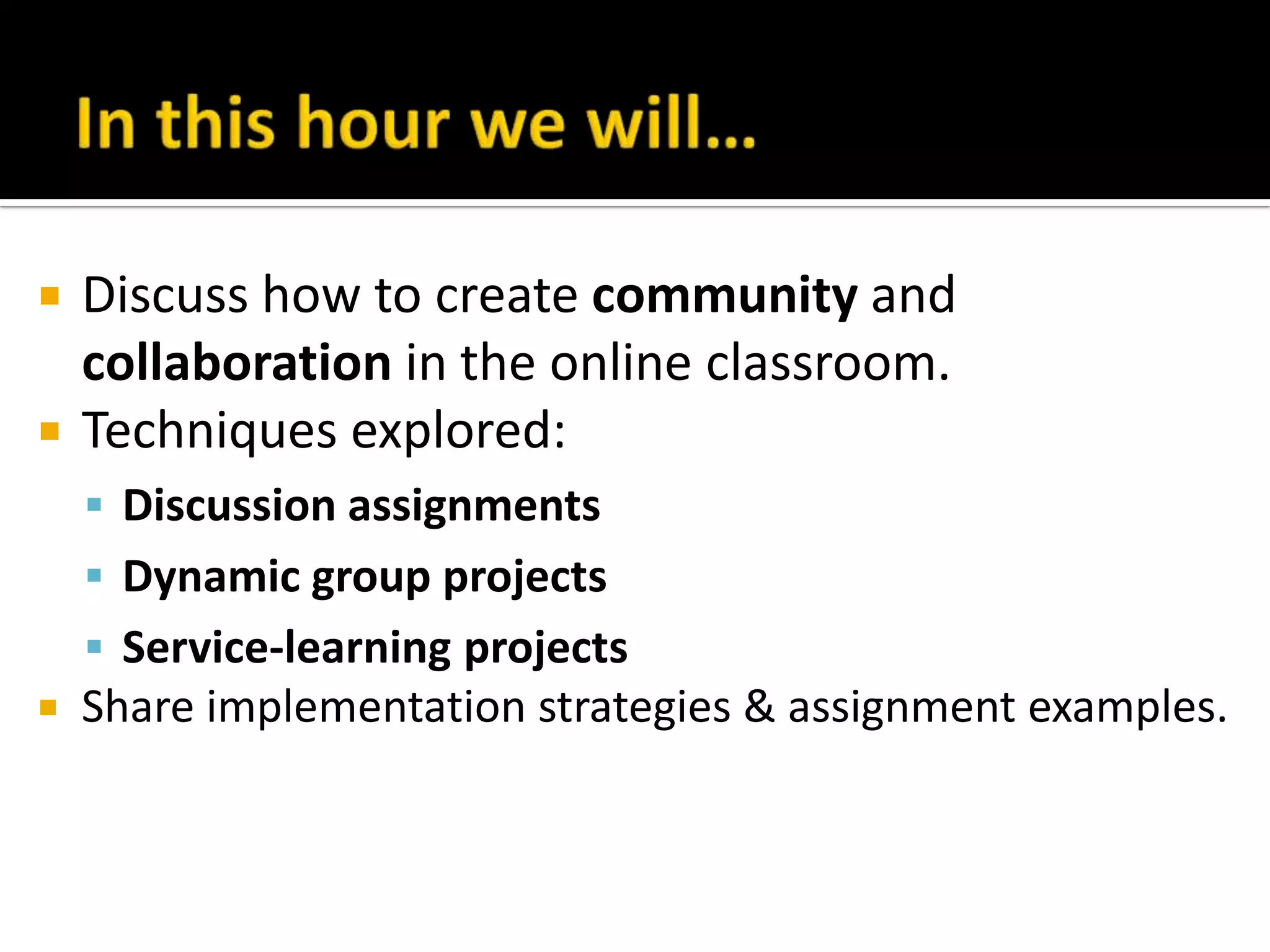 The document outlines strategies for fostering community and collaboration in online classrooms, including discussion assignments, group projects, and service-learning projects. It highlights challenges such as the lack of connections between students and educators, and emphasizes the importance of active engagement through structured interactions and feedback. Additionally, it shares best practices for creating an engaging online learning environment and illustrates the positive outcomes of collaborative activities.