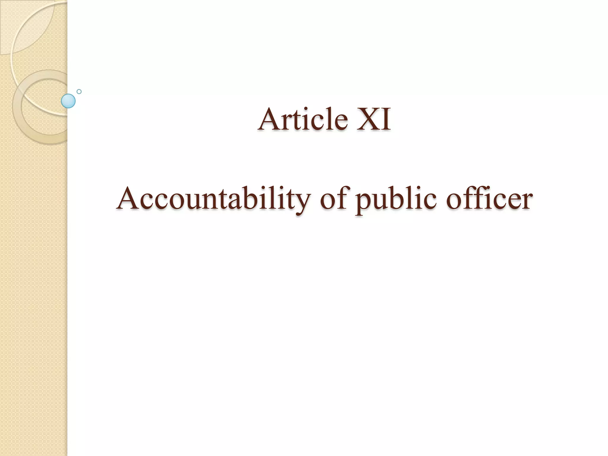 The document discusses accountability and impeachment procedures for public officers. It states that public office is a public trust and officers must be accountable, responsible, loyal, efficient, and lead modest lives. It gives the House of Representatives the exclusive power to initiate impeachment cases. It outlines the impeachment process, including filing of complaints, committee hearings and reports, votes required. It also discusses the Senate's role in trying impeachment cases, oaths required, vote threshold for conviction, and possible punishments of removal and disqualification from future office but not from criminal prosecution. Congress is tasked with making rules to carry out impeachment.