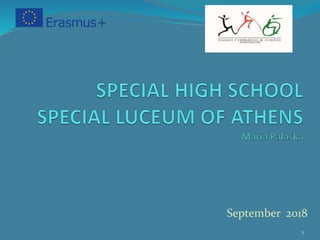The document summarizes a workshop held in Brussels about special educational needs. It discusses a special high school and lyceum in Athens that serves about 100 students with disabilities from northern and southern suburbs. The school has over 30 years of experience in special education and employs 40 specialists, teachers, and support staff. It provides teaching, care, research, and incorporates cultural, sporting, and vocational activities into its curriculum to broaden the educational experience for students. Over 50 graduates have received higher education degrees, and some have won medals in Special Olympics and Paralympic Games.