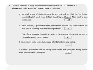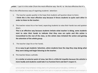 The student's response is that they agree teachers should plan carefully, but unexpected events may occur during a lesson requiring teachers to be flexible and find other ways to meet their objectives. The exam also contains multiple choice questions about effective and ineffective ways for a teacher to gain students' attention, emphasizing the importance of doing so politely and without losing the students' respect.