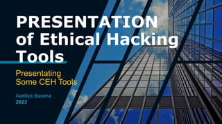 This document provides summaries of various ethical hacking tools, including F-Droid for installing FOSS Android apps, Nslookup for looking up website IP addresses and other information, and RED HAWK for performing basic scans, site title lookups, and other tasks. It also summarizes tools like GoldenEye for HTTP DOS testing, Nikto for web server scanning, sqlmap for SQL injection detection and exploitation, Nmap with vulners for vulnerability scanning, Infoooze for OSINT gathering, and others such as Anony-scanner, Fsociety, Knockpy, CamHacker, PyPhisher, and XSS-LOADER.