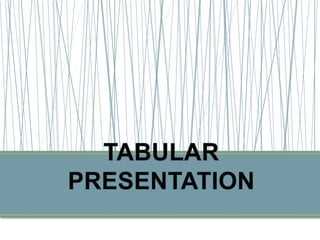 1. The document discusses different methods for presenting numerical data, including tables, graphs, and numerical techniques. 2. It provides examples of tabular data arranged in classes with frequencies, class marks, cumulative frequencies, and relative frequencies. 3. The document also describes histograms and bar graphs as ways to graphically display class data, with histograms using rectangle heights and bar graphs using points at the class midpoint and frequency coordinates.