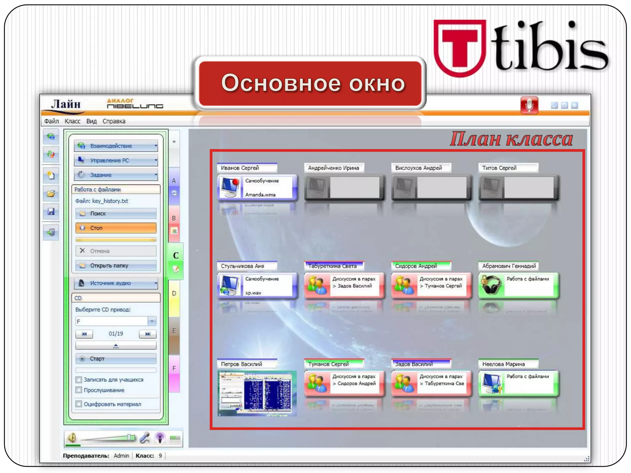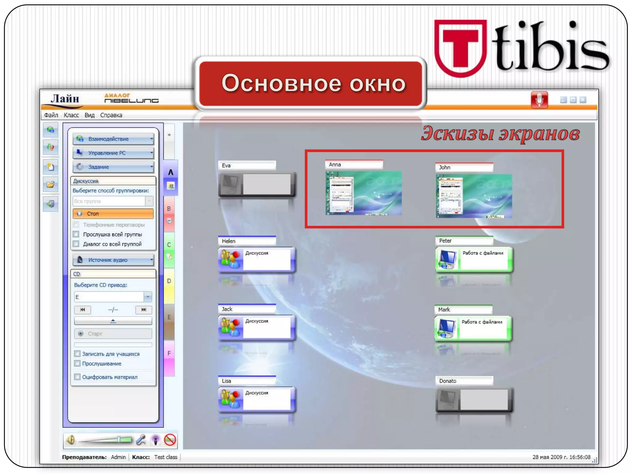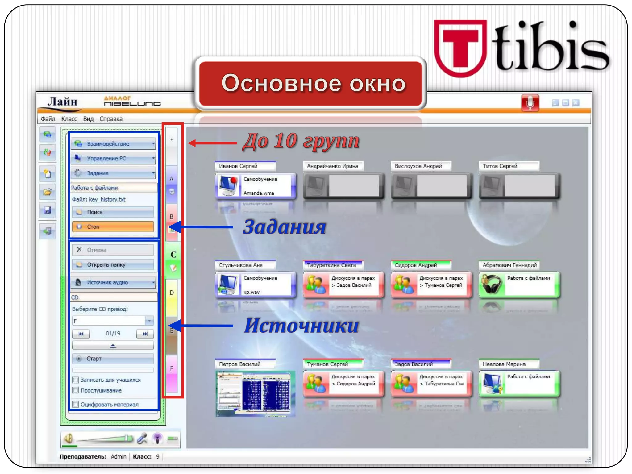 Документ описывает инновационные технологии и программные продукты для образования, акцентируя внимание на разработках для лингафонных кабинетов. Основное внимание уделяется современным методам обучения, технологической поддержке в классе и необходимости развития коммуникативных навыков у учащихся. Программа предлагает различные функции для управления классом, создания тестов и анализа успеваемости студентов.
