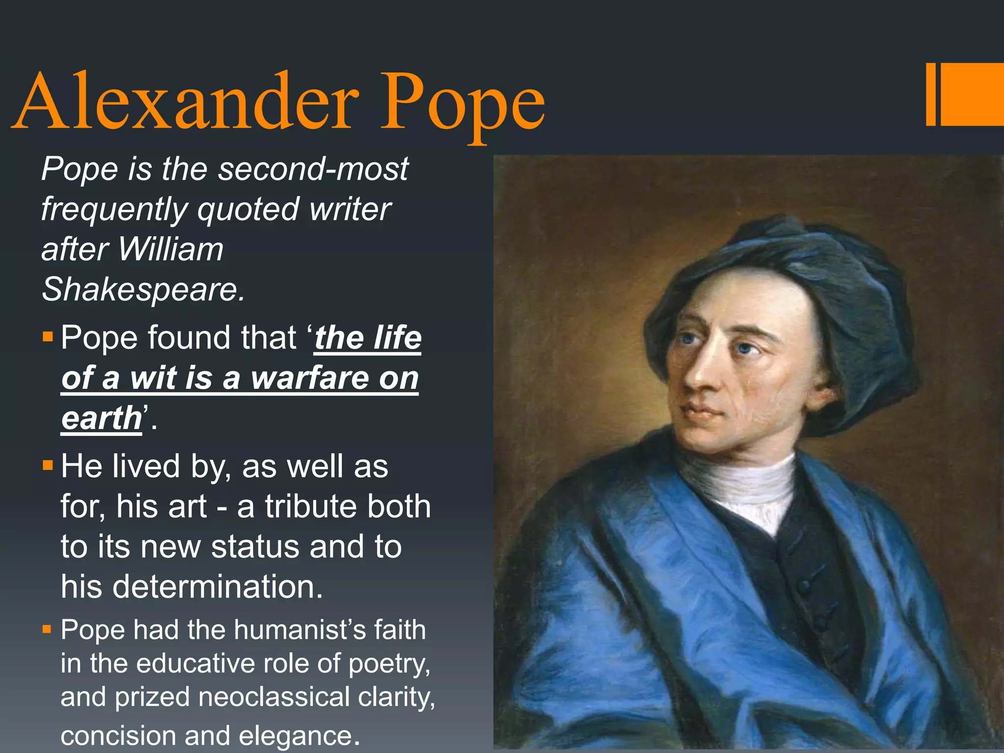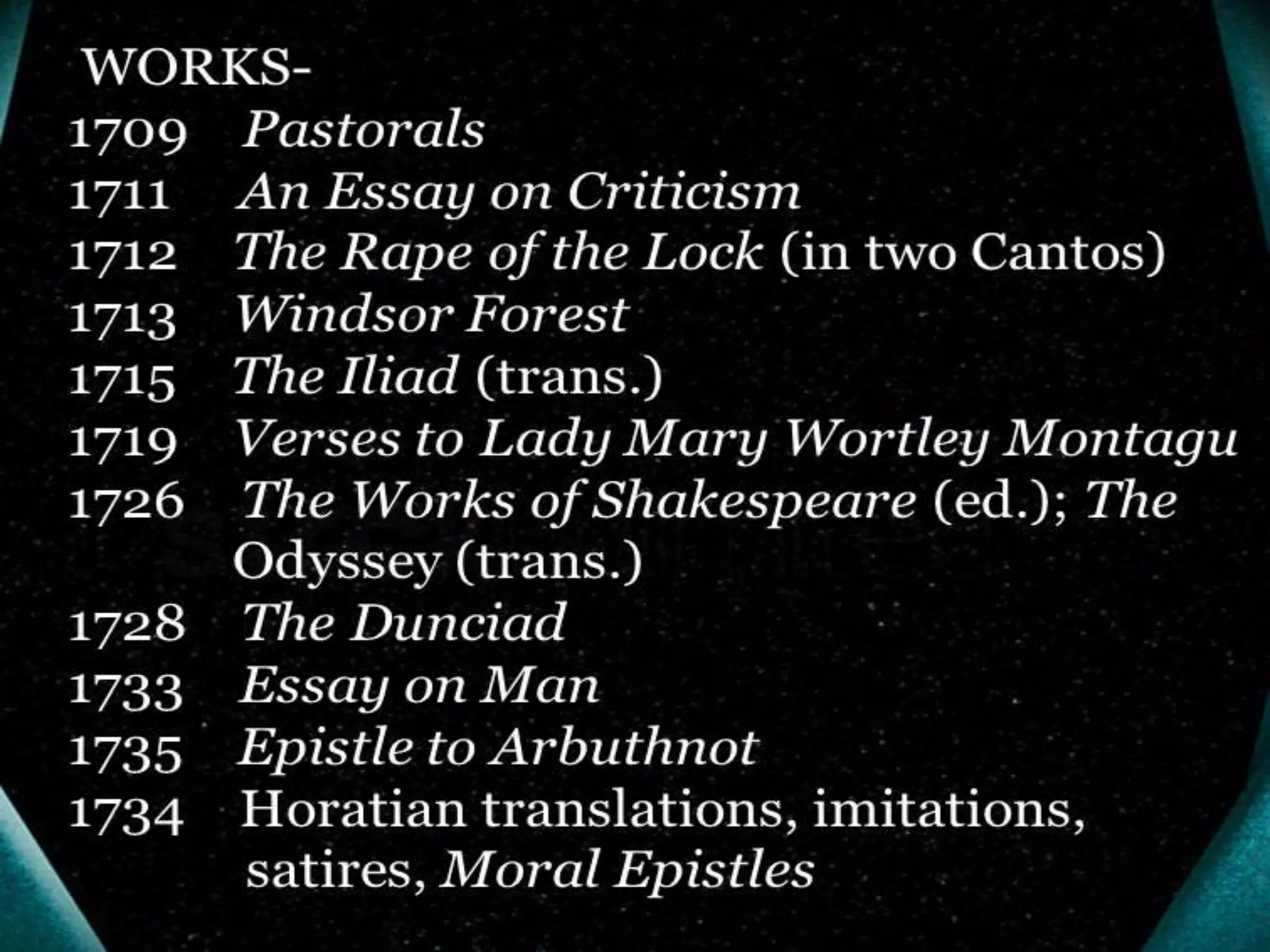 The document discusses the contributions of Alexander Pope and Daniel Defoe to neo-classical literature. Pope is highlighted for his mastery of poetry, encapsulated in works like 'Essay on Criticism' and 'The Rape of the Lock', while Defoe is recognized as a founder of the English novel through notable works such as 'Robinson Crusoe'. Both authors are noted for their lasting impact on English literature and their roles in advancing literary forms in the 18th century.