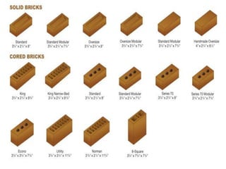This document is the presentation slides for a group project on brick masonry, paint, and plastering. It includes an introduction slide with the group members' names. It then covers topics such as the definitions of masonry, brick masonry, types of bricks, bonding patterns, plastering materials and types, paint constituents, and defects and their remedies. Diagrams are provided to illustrate brickwork terminology, masonry joints, bond patterns, and plastering tools.