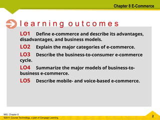 The document provides a comprehensive overview of e-commerce, defining it as the buying and selling of goods and services over the internet while discussing its advantages and disadvantages. It covers various e-commerce models such as business-to-consumer (B2C), business-to-business (B2B), and consumer-to-consumer (C2C), along with supporting technologies and mobile commerce. Additionally, it highlights the importance of Michael Porter's value chain in understanding how e-commerce differs from traditional commerce.