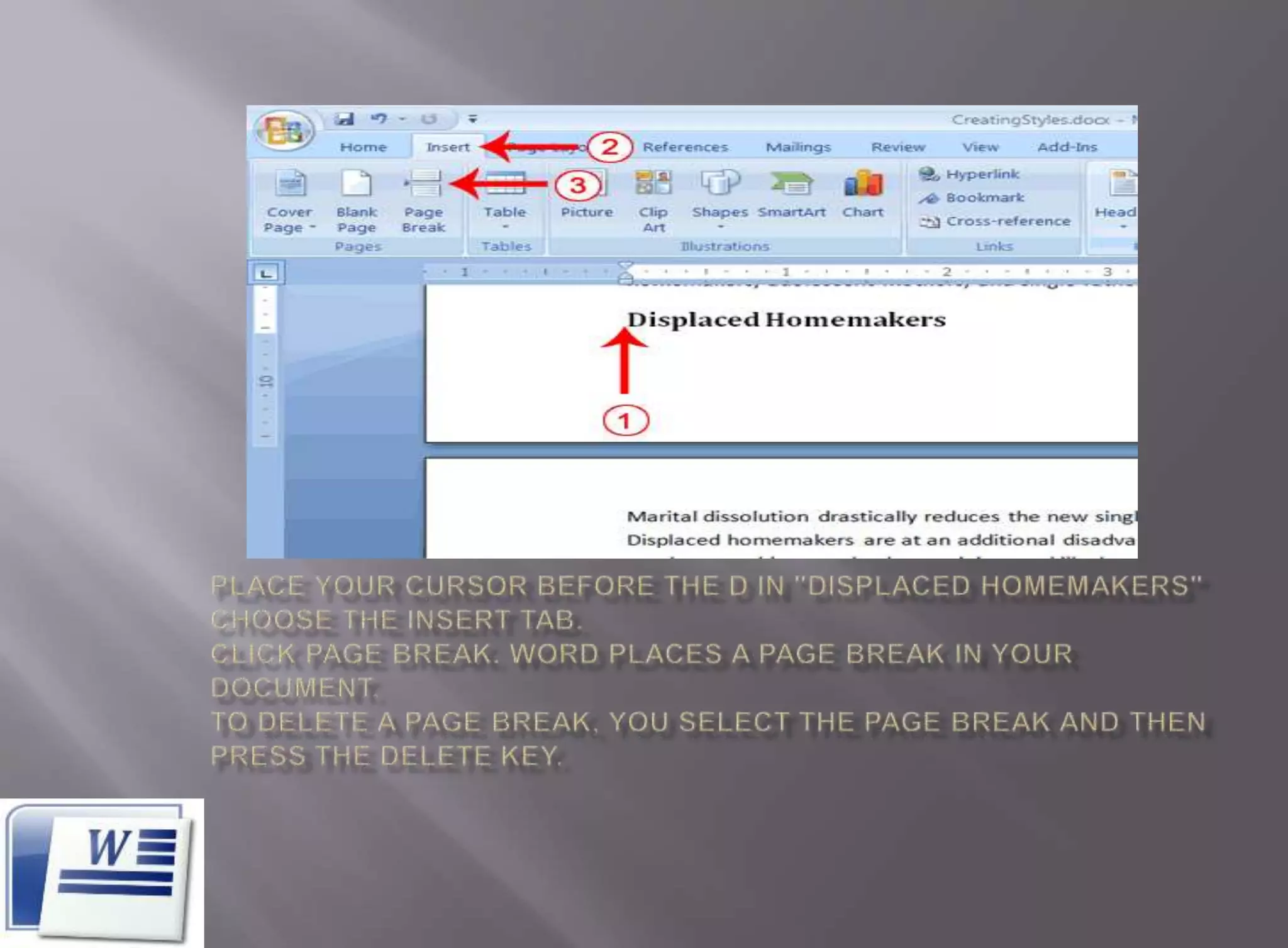This document contains instructions for opening Microsoft Word and describes various formatting tools in Word like changing font style, size, color, adding borders, and selecting text. It also explains concepts like page margins, page orientation, inserting symbols, charts, and indenting paragraphs. The document appears to be classroom notes for a computer project on Microsoft Word.