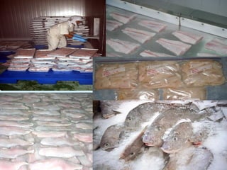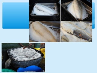 This document discusses various methods of fish preservation, processing, and transportation to ensure quality and extend shelf life. It highlights primary processing techniques like gutting and cleaning, secondary preservation methods including salting, smoking, and canning, and factors influencing fish transport such as oxygen levels and temperature. Effective transportation and preservation are crucial for maintaining fish quality, facilitating international trade, and addressing excess catch scenarios.