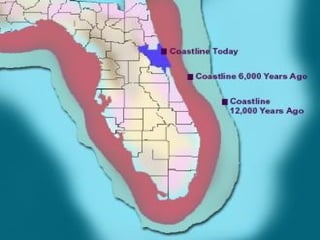 Florida is located in the southeastern United States and has a warm climate, earning it the nickname "Sunshine State." It has a population of over 18 million as of 2008 and borders Alabama and Georgia. The presentation covered Florida's geography, largest cities, history as the 27th US state, government and population growth over time.