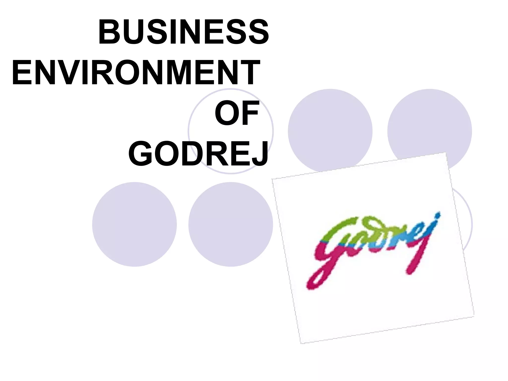Godrej is an Indian company based in Mumbai that deals in a wide range of products including appliances, furniture, security solutions, healthcare, outsourcing services, and more. Founded in 1897 by Ardeshir Godrej, the company's mission is to operate new businesses capitalizing on the Godrej brand image of reliability and integrity, while aiming to delight customers in India and abroad through its globalized vision. Godrej contributes to the environment through various initiatives and has a hierarchical organizational structure with management teams and a board of directors overseeing its 19 manufacturing plants.