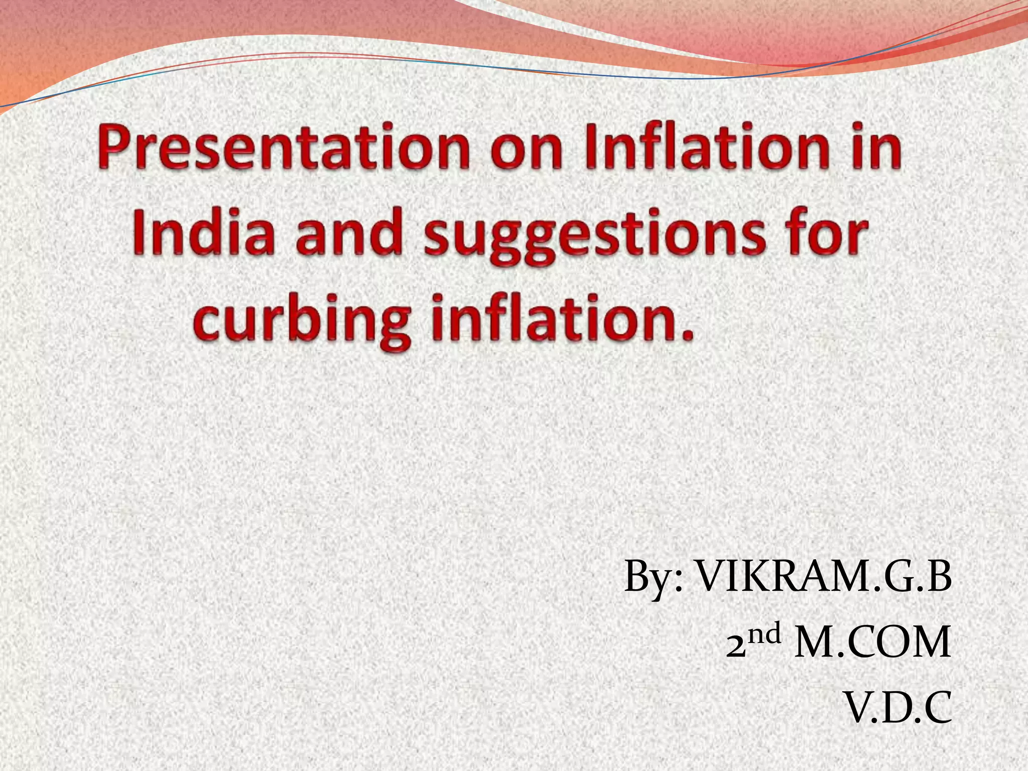 This document discusses inflation, its causes and effects. It defines inflation as a general rise in price levels over time which erodes purchasing power. Inflation is caused by excess money supply chasing limited goods. Key effects are a changing income distribution, reduced savings and capital formation, profits from price rises leading to black markets, and hardship for those on fixed incomes. While some argue low inflation spurs growth, critics say it ultimately hinders growth. The document examines India's anti-inflation measures and policies to better control inflation like monetary and fiscal policies, wage limits, spending cuts, and supply-side reforms.