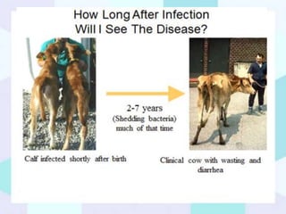 2) It is characterized by chronic diarrhea and weight loss. Young calves are most susceptible to infection through ingestion of contaminated feces or milk.