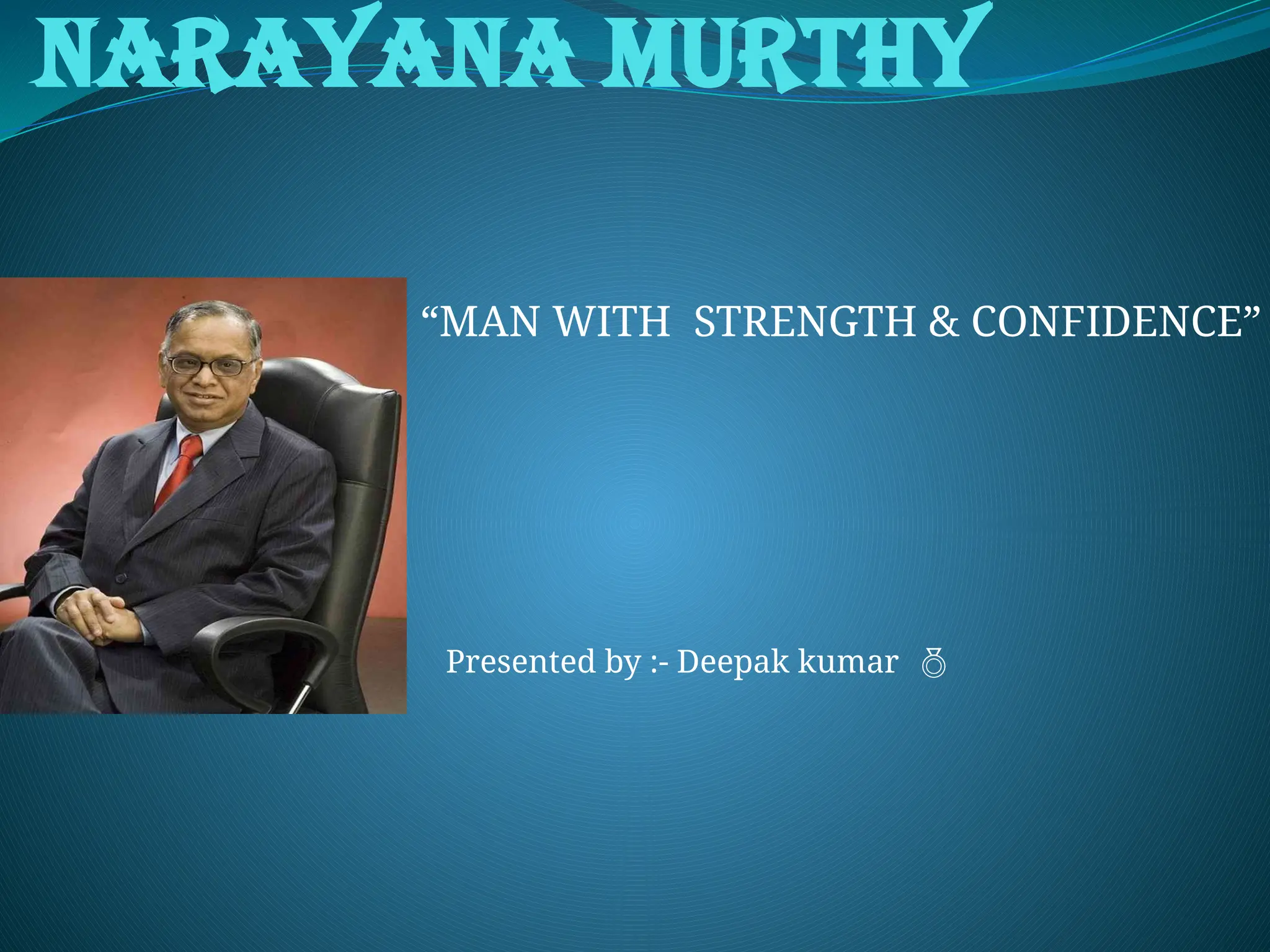 Narayana Murthy, born on August 20, 1946, is the co-founder of Infosys, which he established in 1981 with an initial capital of Rs. 10,000 from his wife. He served as CEO until 2002 and later as chairman until 2011, receiving numerous awards for his contributions, including the Padma Shri and Padma Vibhushan. Infosys became the first Indian company to be listed on NASDAQ and has developed multiple software centers across India.