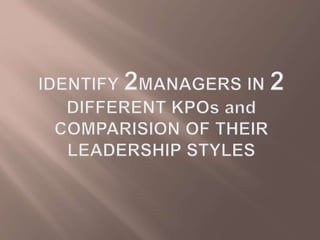 Both leaders avoid laissez-faire styles and delegate work, but maintain ultimate control over their teams. Their approaches differ based on the nature of their respective KPO industries.