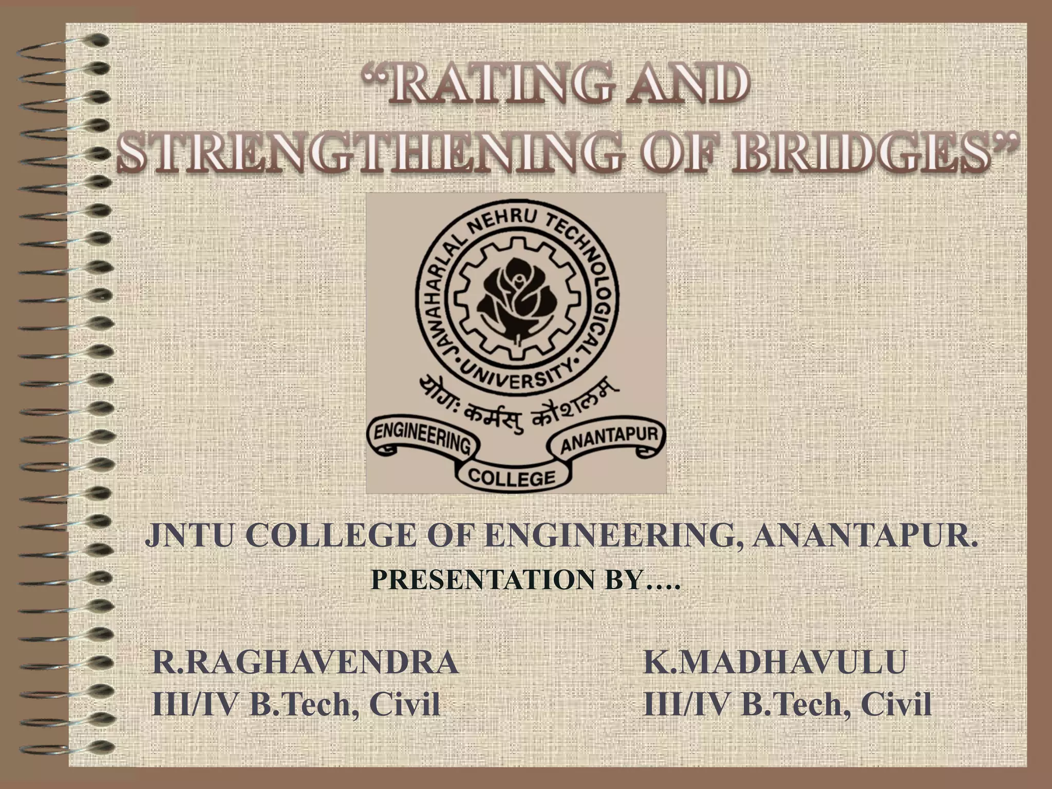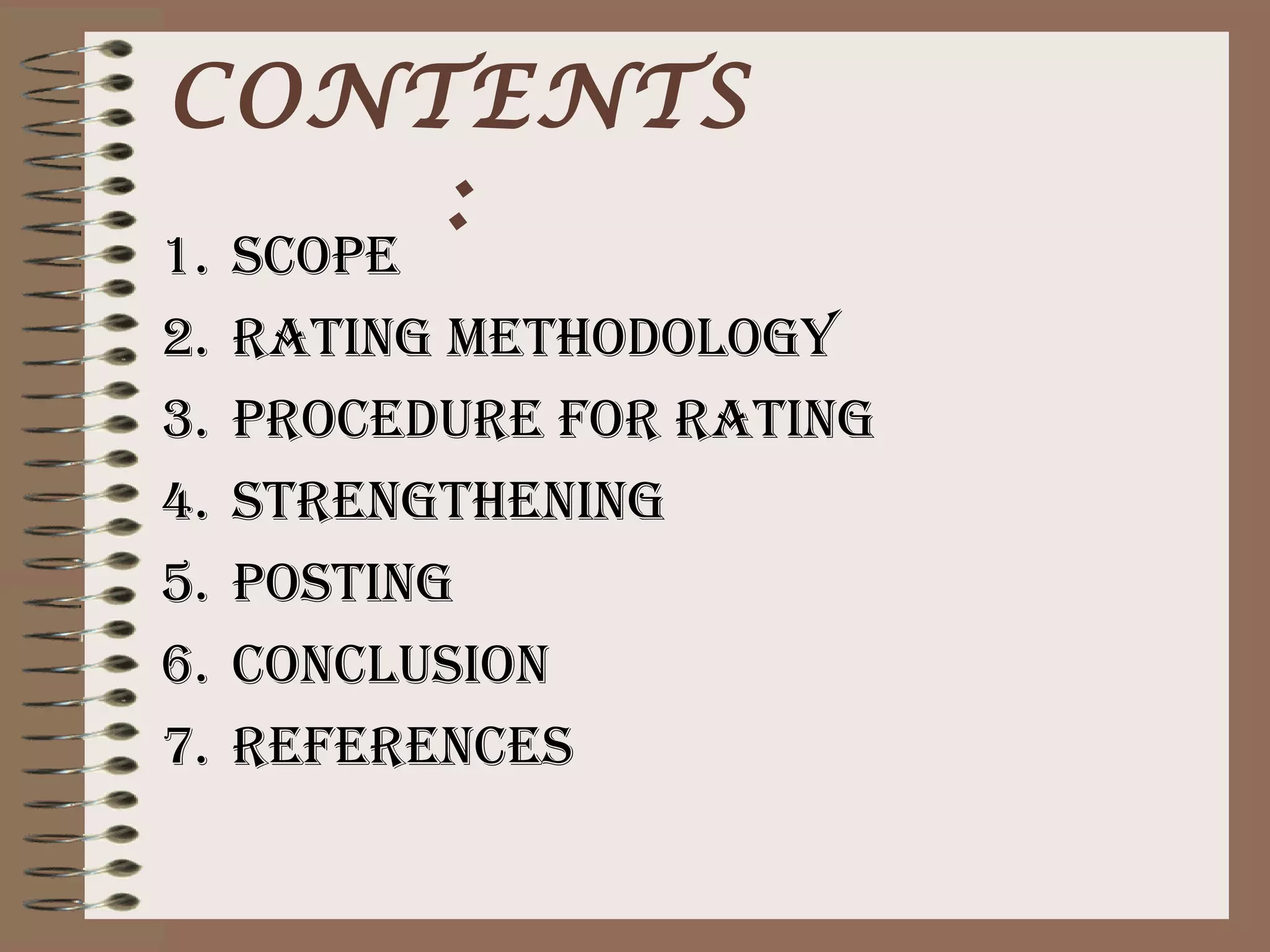The document outlines the process and methodology for rating the safety and load-bearing capacity of bridges, detailing various rating methods such as analytical, correlation, and load test methods. It includes procedures for calculating safe axle loads, strengthening techniques, and posting restrictions to ensure bridge safety. The conclusion emphasizes the importance of proper rating to prevent accidents and supports follow-up actions like repairs or demolitions as necessary.