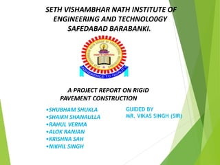 This document provides information about a group project on rigid pavement construction. It discusses: