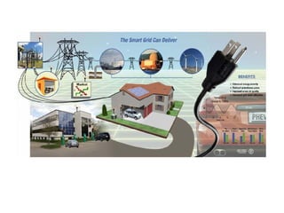 The document discusses the concept of a smart grid, which is an intelligent electricity delivery system that enhances communication between energy suppliers and consumers through smart meters. It outlines the advantages, such as cost reduction and improved energy efficiency, alongside disadvantages, particularly concerns over security and privacy. The smart grid is viewed as a rapidly growing sector in green technology, though widespread adoption may face financial and regulatory challenges.