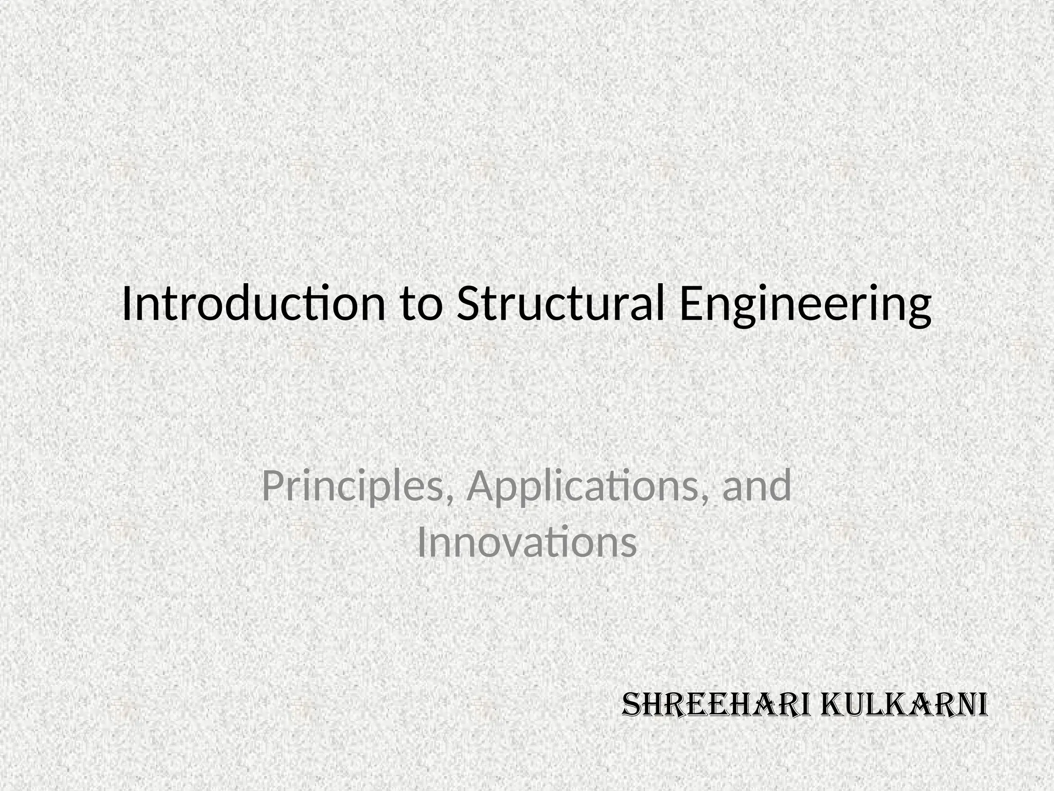 The document provides an overview of structural engineering, emphasizing key principles such as load distribution, types of loads, common structural systems, and analysis methods. It discusses materials used in construction, design considerations like safety and sustainability, and highlights innovations like modular engineering and digital technologies. The aim is to ensure structures can safely support various loads while considering aesthetics and environmental impact.