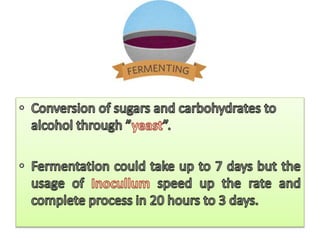 Tequila is produced from the blue agave plant primarily in Jalisco, Mexico. It is made by harvesting the piña of the agave plant and cooking, crushing, and fermenting the extract to produce a liquid with 38% alcohol content. This liquid is then distilled twice to produce tequila, which can be clear and unaged (blanco) or aged in oak barrels to take on color and flavors depending on the aging period - reposado ages 2-11 months, añejo at least one year, and extra añejo over 3 years.