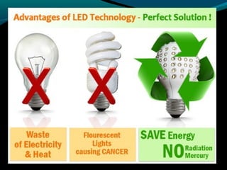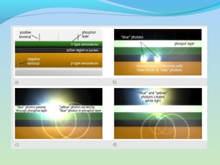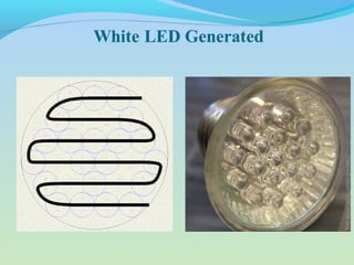 The document discusses white LED technology, detailing its revolutionary role in modern lighting, including an overview of its principles, generation methods, and manufacturing processes. It highlights the advantages, such as energy efficiency and longevity, while also addressing challenges and disadvantages like blue light hazard and initial costs. The presentation emphasizes the significance of white LEDs in various applications, alongside contributing factors like quality checks and alternatives to traditional lighting sources.