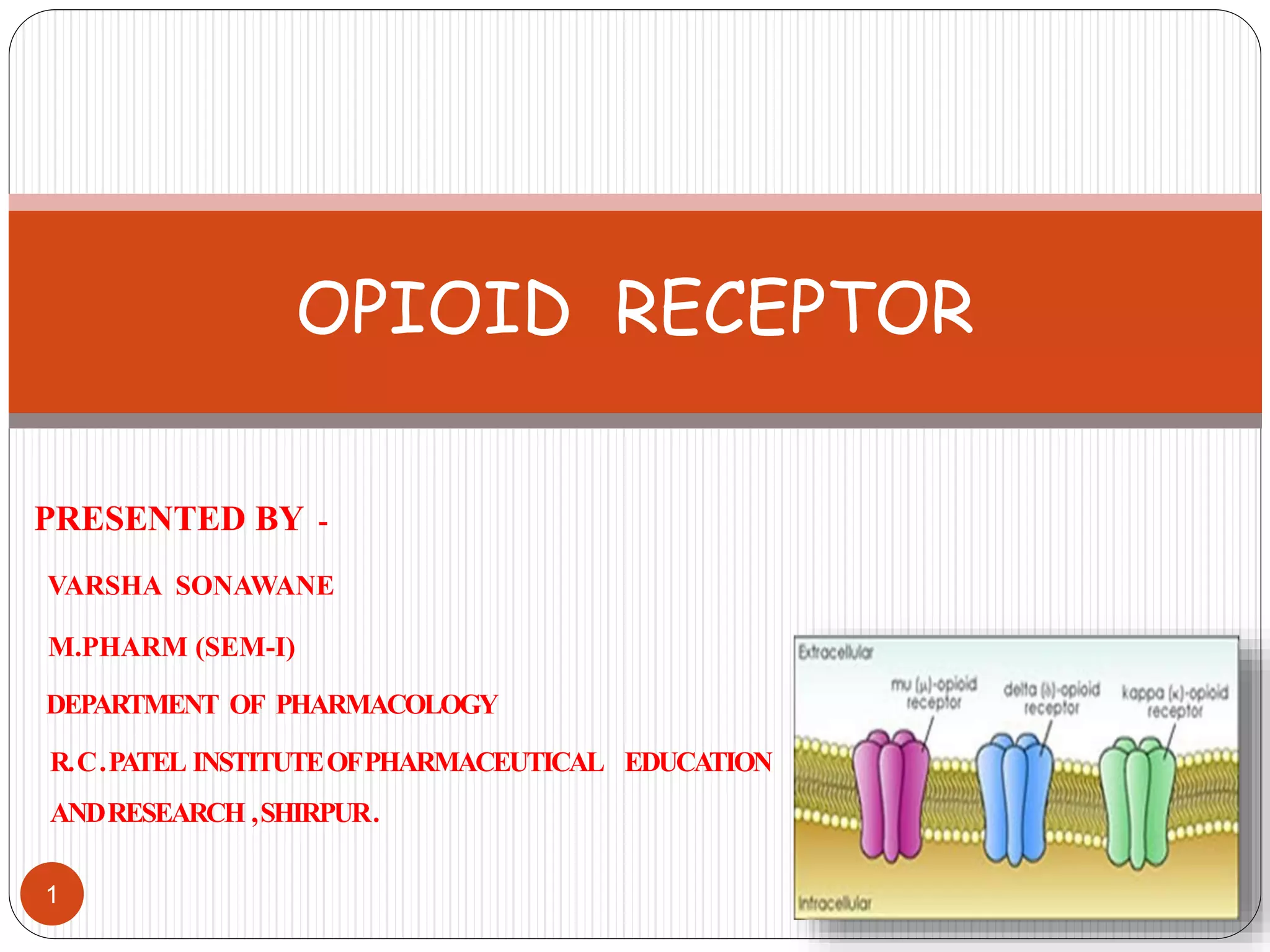 This document provides an overview of opioid receptors including: