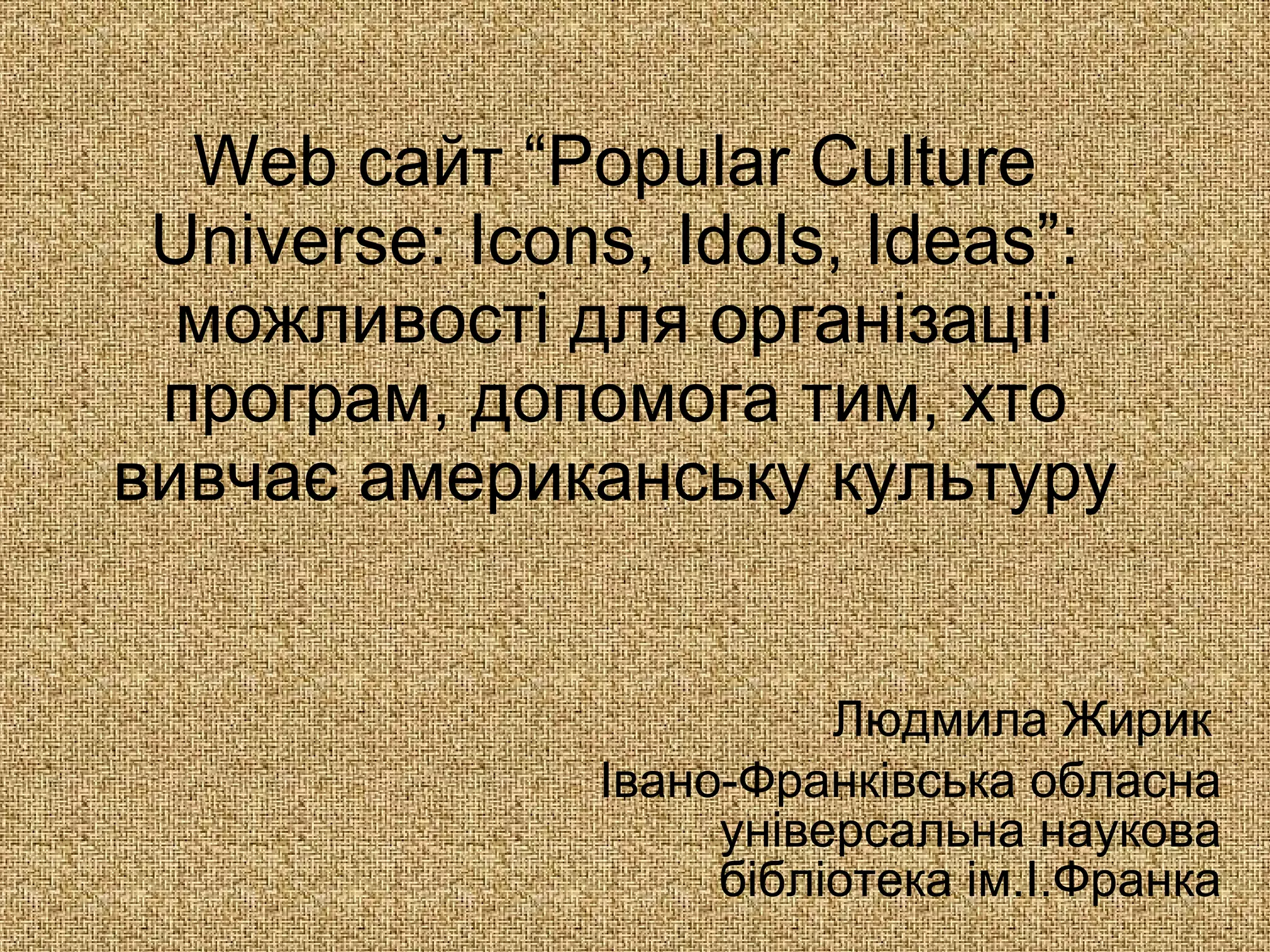 Web сайт“ Popular Culture Universe: Icons, Idols, Ideas ” : можливос ті для організації програм, допомога тим, хто вивчає американську культуру Івано-Франківська обласна універсальна наукова бібліотека ім.І.Франка Людмила Жирик