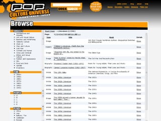 Суперрозмір вашоїколекції: більш ніж 300 повнотекстових томів інформації – цифрова бібліотека поп-культури, плюс тонни додаткових властивостей Вигідне використання: тематичний зміст, який має універсальну привабливість для ваших постійних відвідувачів Подає головну інформацію в такий спосіб, який практикують викладачі: сторінки декад, які пропонують швидкий, легкий та координований пошук в галузі історії, літератури, соціальних та гуманітарних наук Довіряй змісту: досліджено експертами – не є безвідповідальною сторінкою чи зібранням пліток Сприяє місії: новий Навчальний центр, який навчає студентів цінних дослідницьких умінь, медіа-грамотності, висока оцінка минулому та його зв’язок із світом, в якому живемо Поширює процвітання: домівка для студентів та постійних відвідувачів, які люблять себе в поп-культурі вчорашнього дня та дня сьогоднішнього. Блог PCU забезпечує свіжу думку та коментар авторів, видавців та студентів