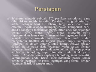 Sebelum merakitsebuah PC pastikan pertalatan yang