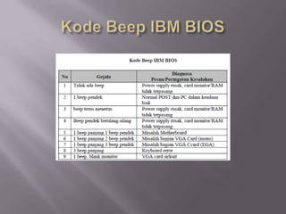 CPU hidup, Monitor Mati,ada beep Disesuaikan dengan beep