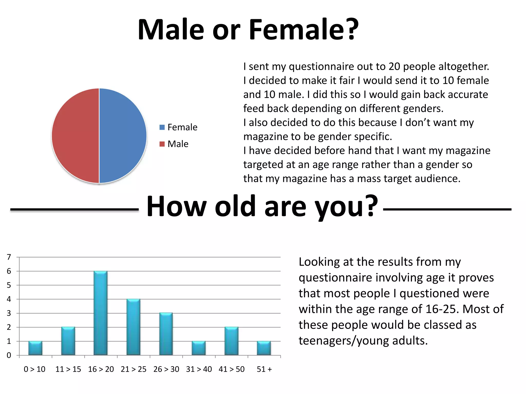 - Respondents were evenly split 10 male and 10 female.