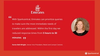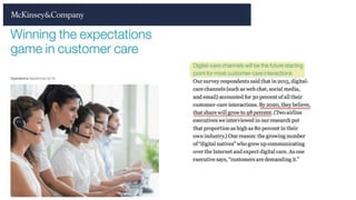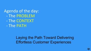 The presentation discusses how companies can deliver effortless customer experiences through messaging. It notes that messaging will overtake phone and email as the main customer service channel by 2020. The presentation recommends that companies: 1) engage customers on social media platforms like Facebook and Twitter, 2) build a 360-degree view of customers by linking identities across channels, 3) scale messaging capabilities using machine learning and chatbots to handle growing message volumes, 4) prioritize messaging by facilitating transactions through messaging apps, and 5) deliver proactive, personalized service through customer intelligence and automation.