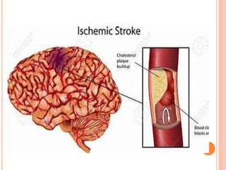 1. Stroke occurs when the blood supply to the brain is reduced or blocked, preventing brain tissue from receiving oxygen and nutrients.