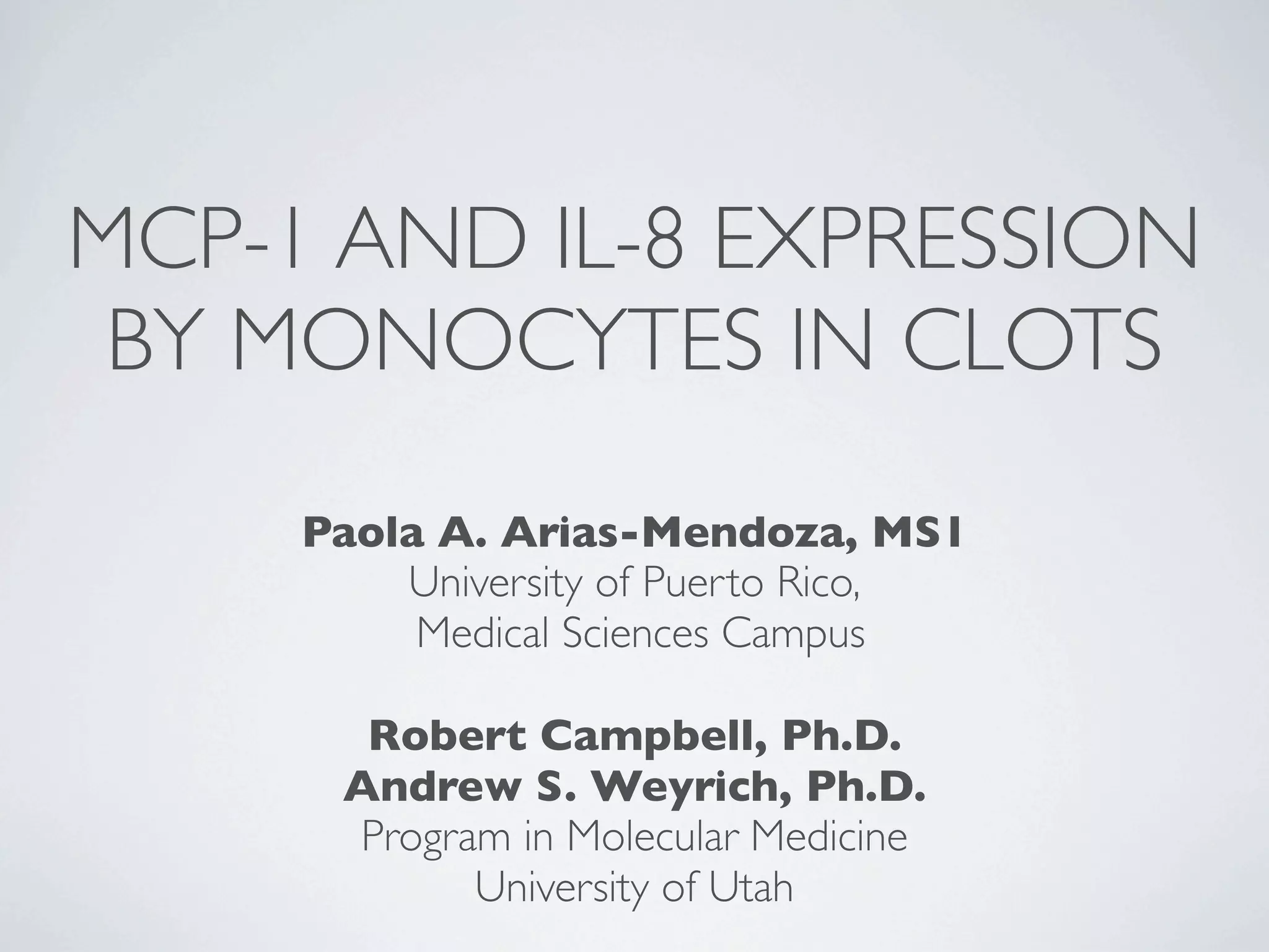 • Characterize MCP-1 and IL-8 mRNA expression in