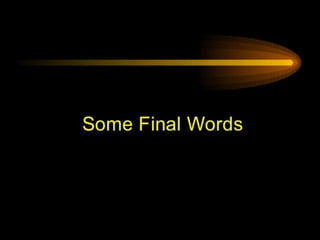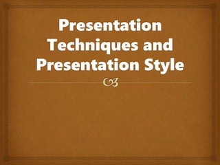 The document outlines effective presentation techniques including the importance of maintaining eye contact, varying speaking volume, and using visual aids to enhance audience engagement. It emphasizes the significance of personal confidence and effective communication in gaining and maintaining audience attention. Additionally, it provides tips for preparing visual aids, engaging the audience, and closing the presentation effectively.