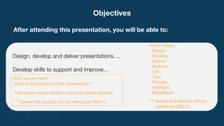 Thank you for attending our presentation on presentation skills. We aimed to help you design, develop, and deliver effective presentations and develop skills to improve communication. The agenda covered four modules including topics on design, content development, delivery techniques, and best practices. In closing, developing strong presentation abilities takes practice but will serve you well in any professional setting.